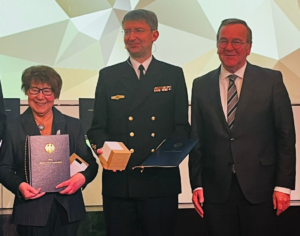 Am 12.01.2026 wurde unser Ehrenmitglied, die „Mutter der Infanterie“ Sigrid Kuhlmann, in Berlin durch den Bundesminister der Verteidigung mit dem Preis „Bundeswehr und Gesellschaft“ 2025 ausgezeichnet. Begleitet vom MAKRO wurde sie durch unsere Vorstände Flottenarzt d.R. Dr. Pohl und Leutnant d.R. Heller.